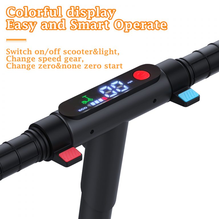 - Colorful display shows battery, speed, and mode clearly.